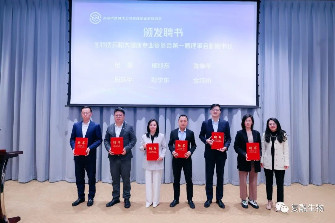 复融生物受邀担任苏州市新时代工商管理企业家联合会生物医药和大健康专委会副秘书长单位。今后,复融生物也将在主席单位的指导下为专委会的会员企业们提供服务助力,同时继续提升企业高素质人才团队建设、聚焦创新,不断增强专业研发能力,提升企业核心竞争力!